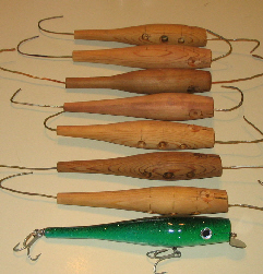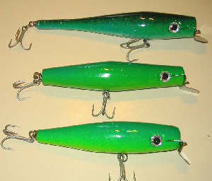 I have completed a few prototype swimmers. The largest is 8" turned from a cedar ballister has 2 belly weights and a Danny 2 lip. It floats at rest, wobbles when retrieved, and dives deep on a fast retrieve. The others have similar action except on a fast retrieve they run at surface level and roll sometimes breaking the surface. I'm undecided if they need further tuning or should just be used for slow retrieve. Any suggestions, I know some of you guys have made a million of these.