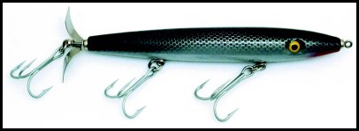 The fisherman in the show I saw had plugs with 2 large props on the rear, when jerked hard it made a heck of a noise and splash!