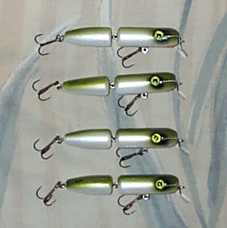 Some new stuff from me. Jointed swimmers. 3 3/4 inch, AYC, used screw eyes on these. Nice snake like wiggle on top. Will dig about 6 inches if cranked pretty hard.