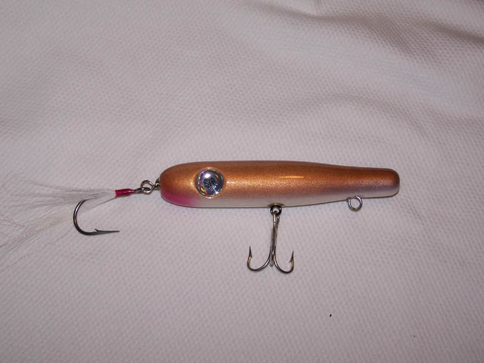 After looking at BassDozers site I decided to make a version of his reverse squid. 6 1/2" long and weighs 3 1/2 ozs
