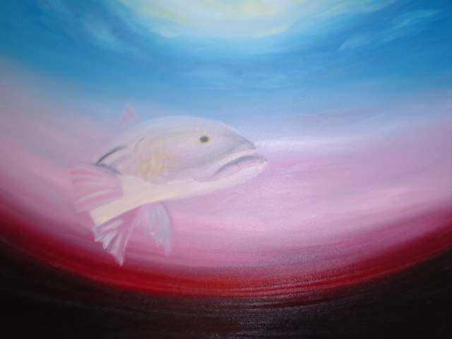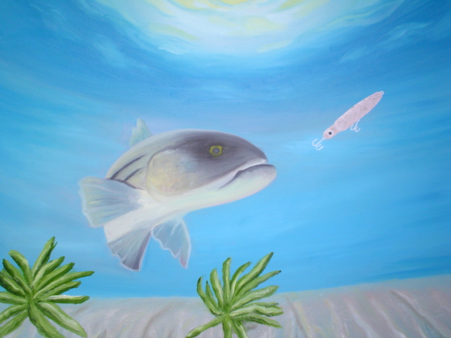 no, its not my belly( although my belly is plenty big enough for a mural ) it's an oil painting on canvas. NIB- good idea, i will. she's an artist and i've been trying to get her to paint fish for a while, this is'nt near done and it's her first.