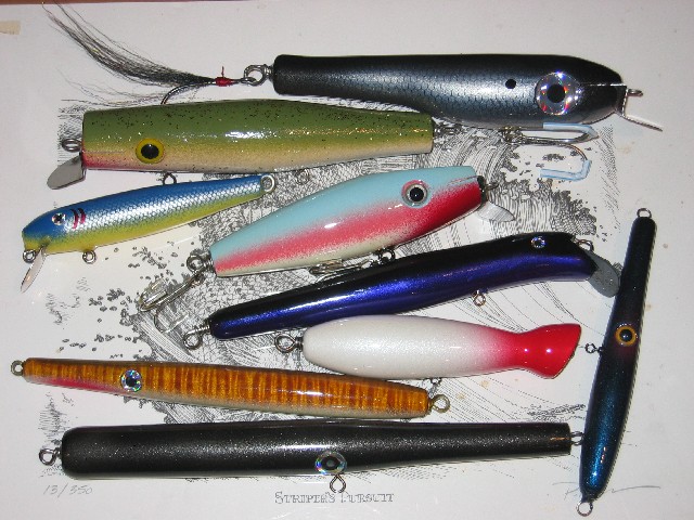Nice batch o' plugs.....you guys are making some nice wood to be sure!  Thanks to all who were involved and I plan on getting them wet this weekend!  Now for Tagger I will post pics of the plugs I put into the swap! I hope all liked them and they catch many!