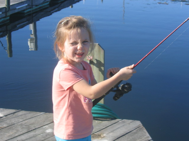 That is awesome  , start 'em young and it's something you can always share together . Now get her some polariod glasses and a fishing hat , so she don't have to squint (but she looks cute doing it). Good for the both of you  johnny