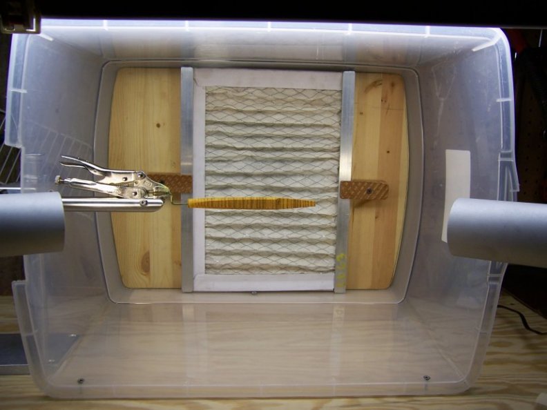 1 Rubbermaid "Under the Bed" storage container. I only recommend using Rubbermaid products for any application that might involve drilling or cutting holes. The other brands all seem to have a tendency to split while you're drilling them.