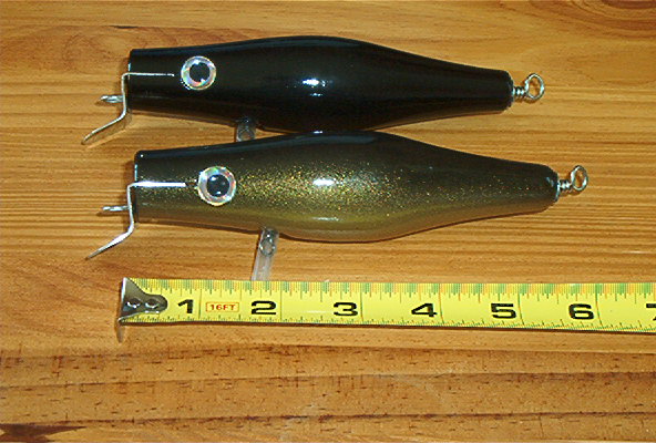 5 1/2, around 2 3/4 oz, they will have the heavy 6x 4/0 vmc's on the belly, tail will either be another big treble or a big stainless dressed siwash. I hate watching the dressed vmc's rust..