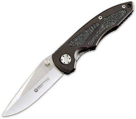 The Helios models are designed for tough daily use. Because of the light weight, you hardly realize you are wearing a knife at all. The clip can be attached in two positions - for either tip-up or tip-down carry. The handles, machined out of 6061-T6 aluminum, have been hard coat anodized. The slip-free inserts guarantee secure handling. The blade is X-15 T.N steel, which has a reputation for excellent cutting performance and extreme resistance to corrosion. Overall length: 8 1/4". Blade length: 3 1/2". Weight 4.2 oz. Lifetime Warranty, Made in Germany