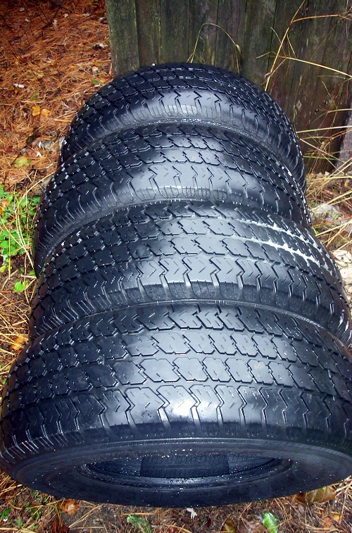 Just took them of a JIMMY this Monday.took the pic today Wensday as you can see it's raining they are P235.75R.15 they have some WEAR as you can see. BUT there are 4 of them. will swap for 2-->