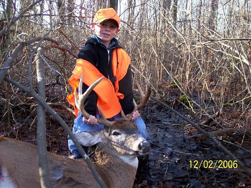 So after I see him go down about 100yrds away.. I finaly calmed down made my way down the tree and headed home to get my son Philip,, before even taking a look at the buck. Still in his jammies eating cereal.. I told him I had shot a deer and needed his help finding him. There where some areas in the swamp that where deep and very briery but he was haveing a blast. As we got to the area where I had shot him, I put Philip on the blood trail and told him to start looking, when we got closer my brother taped my shoulder, we could see the buck but Philip still hadn't so we told him to continue while we looked in another direction. It didn't take long he was so excited finding that buck. It was a morning we soon won't forget. I don't know how many times he told me how great of a day he'd had , he also said he'd rather be hunting then playing any day. It was so awsome taking a nice buck but even more so shareing it with my son. Thank you Jesus.