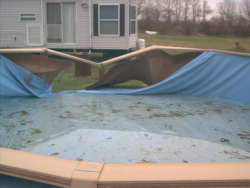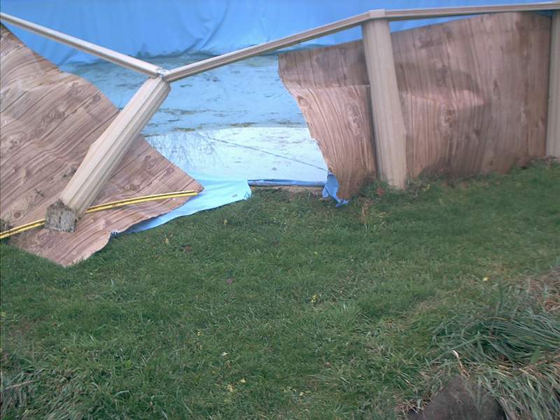 my daughter and I were standing in front when the small hole suddenly split the side and the liner started to come out. I yelled run and we did just as the 2 foot high tsunami erupted from the pool. I only wish i had the camera with me when it happened.
