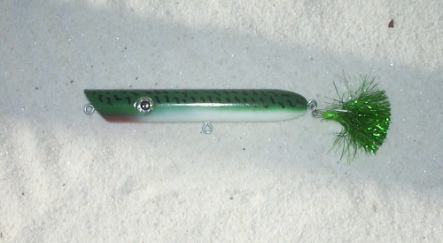 was thinking that pencil popper looked good before you painted it ,, spooks too ... I see big popper and whats the slope head ? darter attemt ? You'll catch on that pencil I bet ,,. I see large pouncing on that just as the sun peeks above the horizon .. no dought,,, Belly hook may be back a tad much but alot of good spook types (ballerina) have the belly hook back like that .. go walk it ,,,let us know .