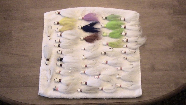 43 bucktails variety of colors. Some used some not they are 3/4 oz to 1 3/4 oz