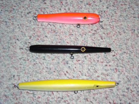 Three new Beachmaster lures, Hot Pink atom junior, 2oz Black Needle and 3oz. Yellow needle $80.00 shipped.