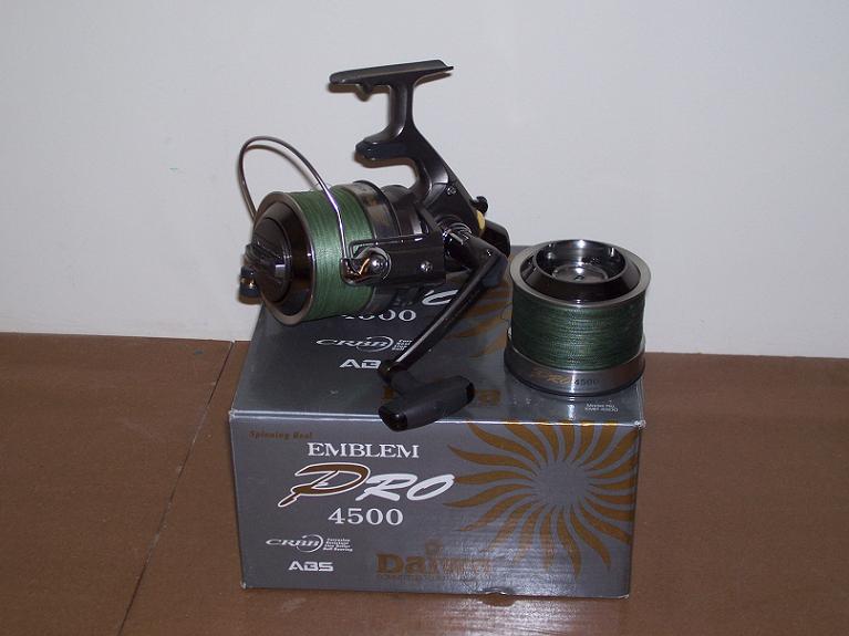 Diawa Emblem Pro 4500 with two spools filled with 20# and 40# power pro (I think). Other than a few smal scratches it's in perfect condition. Bought last fall and used maybe twice. $125 shipped Paypal only