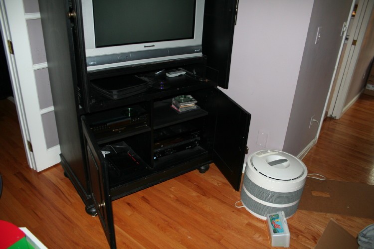 The bottom two doors for components are a little crooked, always have been. Most of the dings are internal. I cut open the back of tehe cabinet to have better access to wiring. This may be an issue if your tv is not that tall, you'd be able to see the back wall through it.This was purchased from Jordan's furniture in Avon MA for $1200. I'm asking $300.