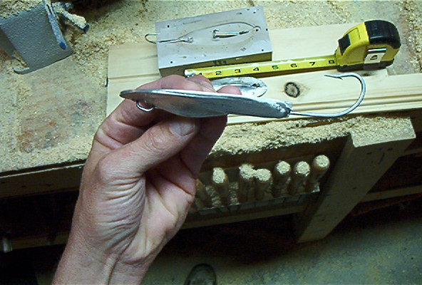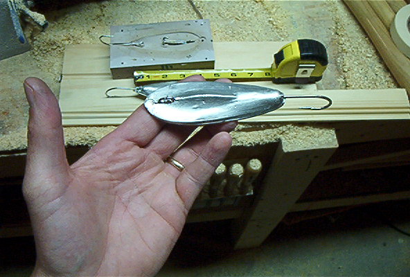 The lead ones are much, much cheaper to make, so I'll probably make a bunch of them and and just spray paint them the colors I want. I think I have a can of chrome spray paint kicking around somewhere... the good thing about these, is when they get too beat up from the rocks in the canal, i can just hit em with the torch, melt em back down and start over.