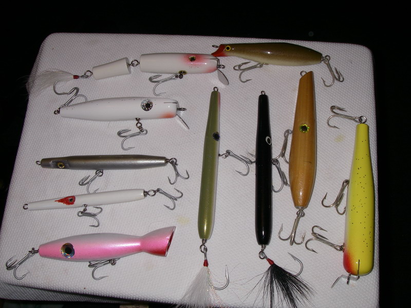 10 lures I got this year to fish but won't be able to for quite a while.. $105 shipped paypal or postal money order. I won't split the lot up. All are new except for a couple that were swam. The yellow swimmer has a small split on the tail but it was filled with epoxy before top coating. SOLD