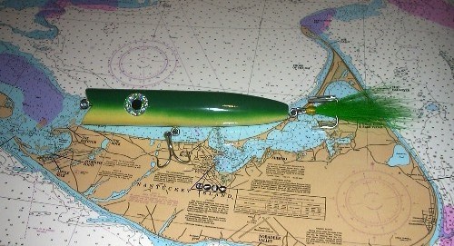 I realy like POPPERS I only have 1. it's a GIBBS. I have a few plugs I built this past winter, an I decided to CONVERT 1. here it is the BIG GREEN WOOD. I took it an SANDED it down, I picked up a small 3/4" drum sanding attachment for drills an put a CUP in the mouth. seem ok so far, also re-located some weight. fill in all the holes an sealed it.