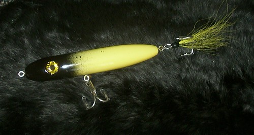 Nice job ... how's she walk .. Best catching spook imho is pearl white with a little red chin .. I know, boring ... but not when your fishing it ..