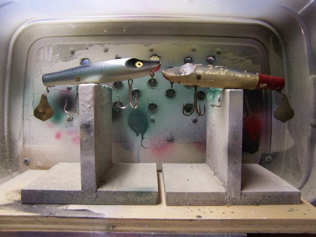 I then sealed the plug in my usal manner ( 60/40 BLO)...once the sealer, the plug was primed... as a matter of convience, I used acrylic water based paint to paint the plug, I clear coated it with envirotex spray ( 5 coats) and assembled my plug... I tested it last night on a local pond in the driving rain, it swims just like the original...