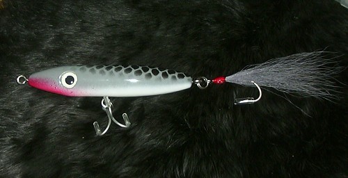 looking good Vinny .. just a personal prefference ,, but when I make a slope head, I like to have the slope make a smooth transition with the round .. no point on top . same with darter,,surfster, bottle darter.. Salty Dog ,,no fluff on tail of spook ..I'm being very critical today .. nice pluggage as always .