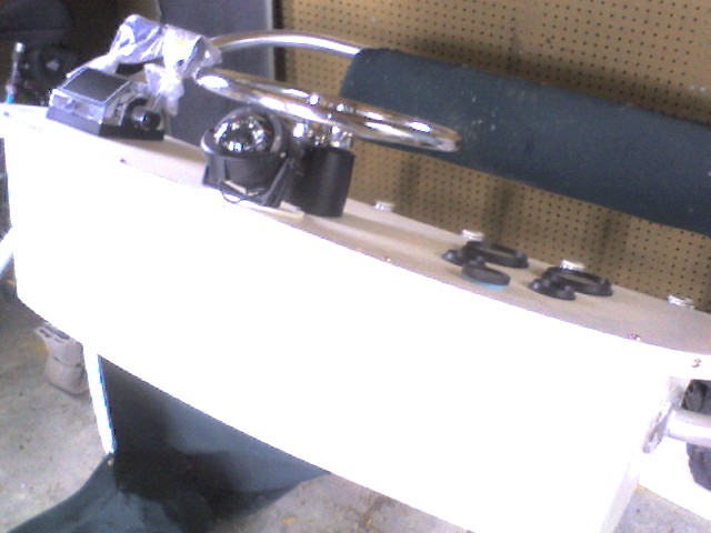 Marlin Tower with full Merc controls (with plastic still on them), guages, steering wheel, compass, and 4 rod rocket launcher. I believe the top was originally purchased to go on top of a Bayliner Trophy, but I am not sure. The guy that bought it originally is dead and hasn't answered any of my questions. I'm not sure if it has ever been on the boat or not everything looks perfect just dusty from being in the shed for a few years. Perfect to go on top of a express outboard power boat. No Buggy top. Located in Falmouth MA. Asking $975.00. Front legs measure aproximately 61" wide and the back 71".
