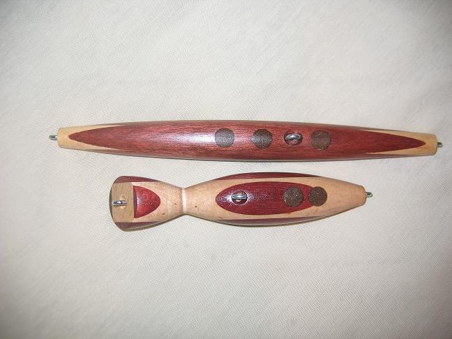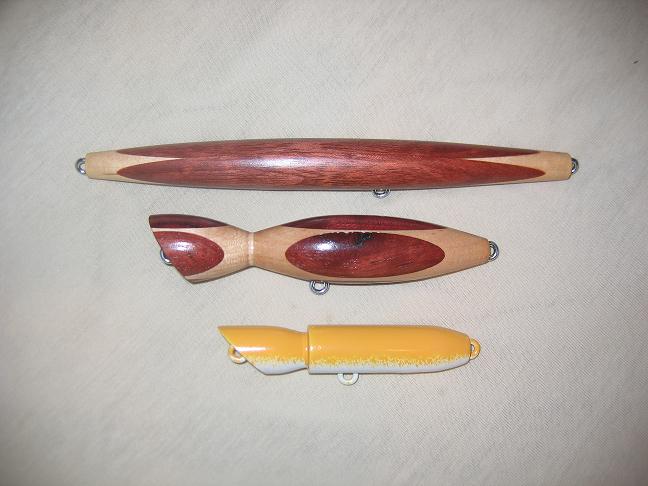 The plugs you have were his specials, he would get exotic wood like cherry, walnut and purple heart, glue them together into blocks and turn out the plugs you have. I used to give him a hard time about the fact that he also weighted them like the working models: I would say to him "George, why are you wasting your time putting lead into those? No one is every gonna use them!" He contended that some people did fish them.