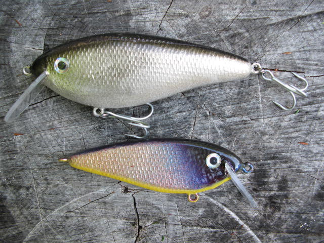 This is the other stuff I've been fussing with. Hand carved with plastic lips. These guys swim pretty deep, at least 10 feet or so. The bigger one trolls very nicely. the other I think will end up being more of a casting lure. I'm hoping I can find some pogies with some bass around them.