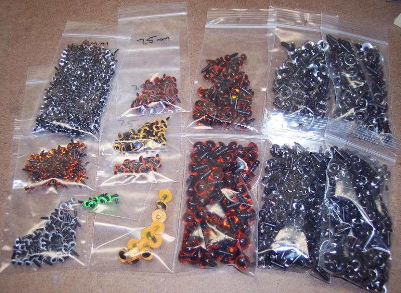 Variety of plastic plug eyes.....smaller ones are 6.5 and 7 mm. $30.00 shipped for the bunch!