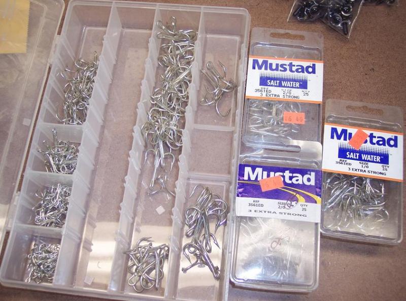 Selection of closed eye Mustad hooks. Size 1/2/3.......1/0...2/0....3/0...some 4 and 5/0.....full boxes of 2/0 and 1/0. Great for you plug builders! $23.00 for the bunch shipped!