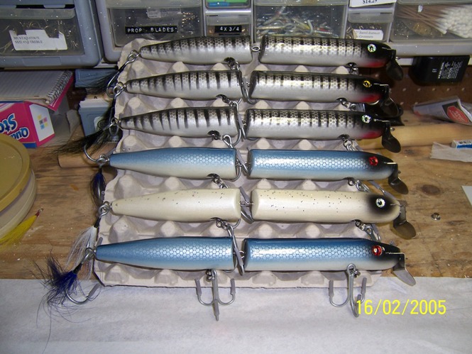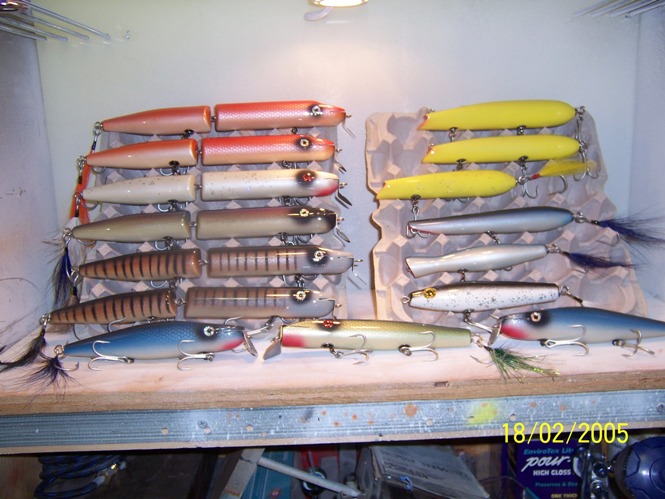 the last picture hodgpoge is a variaty of Chrismass presents, ranging from big jointeds to surface poppers, to medium surfsters and pikies..