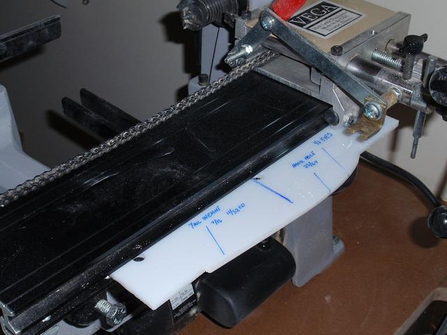 First I turn an original, usualy of scrap pine, I cut a piece of 1/8X2 3/4 X 10 lexan and glue a piece of graph paper to it....