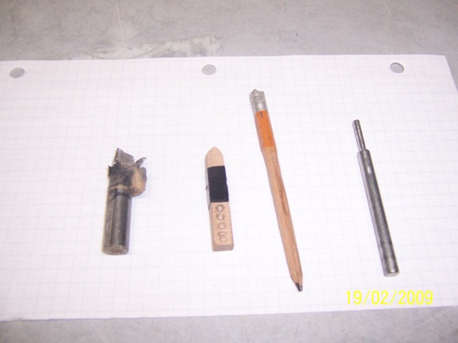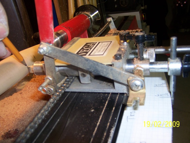then with the duplicator in place, I install a home made hardwood tracer, if tracing an original, cover the tip with felt.... I "tune a pencil to fit my stylus, when the pencil is installed, apply SLIGHT down pressure ( too much will tear the paper) now move the hand wheel to trace the pattern..use a square to mark the ends of the plugs, also move the tracer in and out to mark , weight and hook holes...