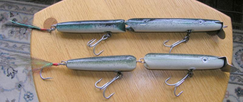 I was looking at the Tatoo jointed eel at 1st light in Rowley over the weekend and I like your design better...... the double J is more of a "big meal" for a cow striper while the tatoo jointed plug is just an afternoon snack . That being said... Nate at 1st light said one of his friends caught at least (4) 30 lb fish on his tatoo jointed plug last year.... that plug has serious mojo...