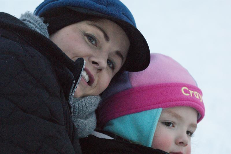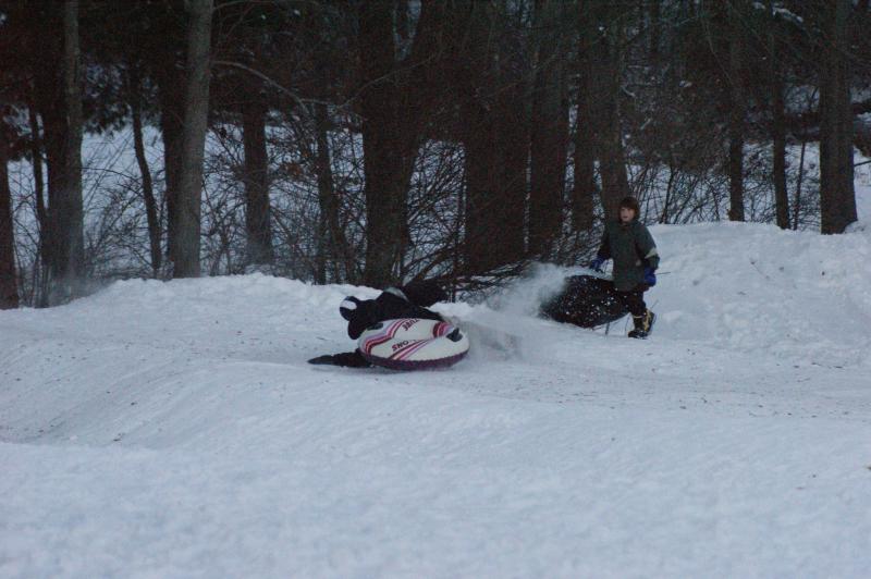 Definately my wife, I was fighting a cold at the time and she was sledding with the baby.
