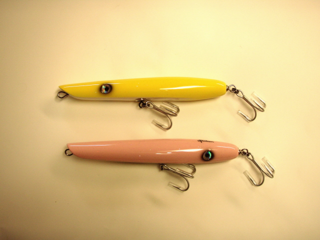 jointed is 11" 2-3/4 - 3oz with 3/0 hooks and a little more with 4/0's. sorry to say that ness did'nt have time to paint for this show..might have a few around, if i do i'll bring 'em.