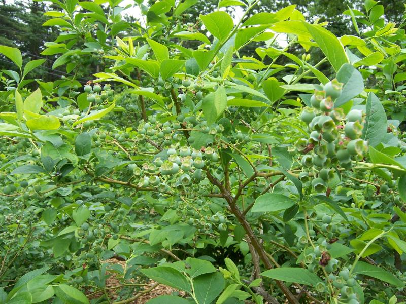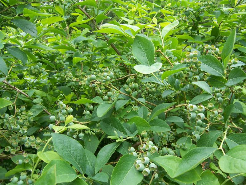 Blueberries (only have 3 bushes left) are almost non-existant due to too many years of neglect. We pulled all the vines that were entangled through it so maybe next year will be better.