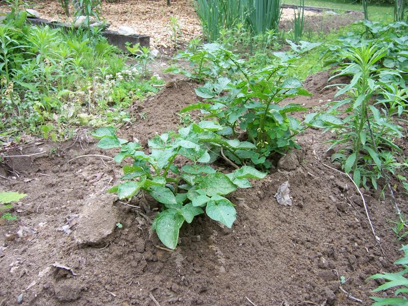 Asparagus gone to seed, Egyptian onions, potatoes and a great crop of weeds so far. My tomatoes, peppers, and cukes look terrible so far. Not worth a picture.