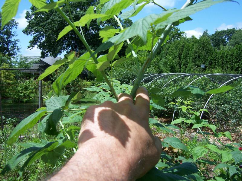 I have a white raspberry plant that outgrew the black raspberry plant, 2fold... this thing had very long branches that I *allowed to touch the ground (*did not maintain it properly  ) only to realize that at the spot where the branch touched, a new plant started growing. The interesting thing is that sometime real late fall, I trimmed the plant and cleaned up my mulch, but apparently I didn't do a good enough job because now I have about 12 plants out there. None of the old branches have sprouted, do I remove those completely? How do you maintain your plants?