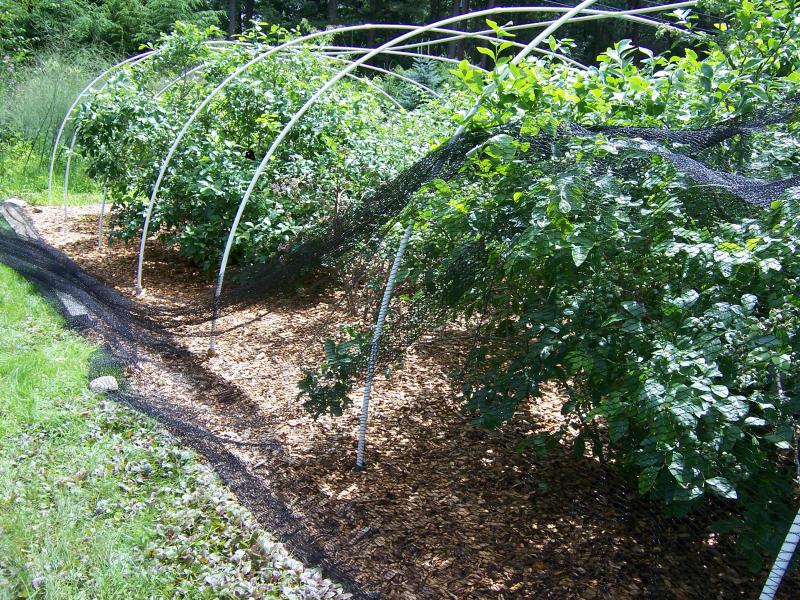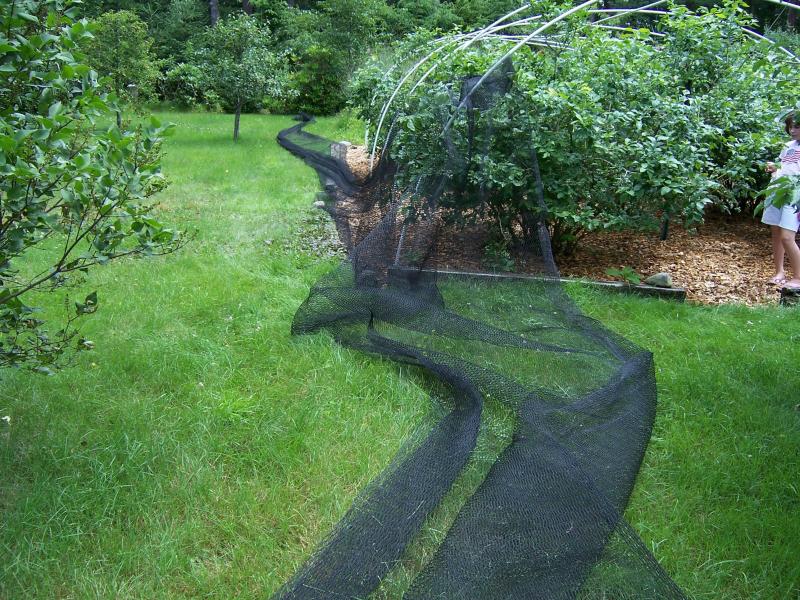 Finally got the netting up for the blueberries, as usual I am late. It is pretty hard to get up by yourself and an 8 year older but we did it. The birds, catbirds, cardinals, robins, are so pissed. All they did was squawk as i was putting it up and when I walked away they immediately tried to get in. I am sure they will go for the uncovered black raspberries now. I still need to make up some more stakes at work tonite so I am sure I will have to let a few out tomorrow. I have learned that if you let the birds that do figure a way in stay in the netting all day and nite instead of getting them out fast they usually will never return as it must be too stressful for them and they learn. With all this rain my berries plants are so over grown this year. It will help though for one of my most prolific years fruit wise though. It will just be tough walking around the bushes as most of the branches are so loaded with fruit they are hanging on the ground. Got 1 variety right now that is ready to go and the majority of the crop 2 to 3 weeks away. Wish my tomatoes look as good.