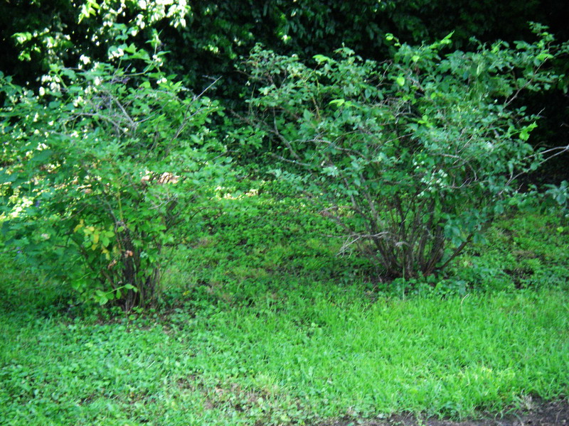 The Easter Lily is where the shrubs used to end. It pushed up through 16" of soil last year so we let it stay. Too nice looking a flower to pull it.
