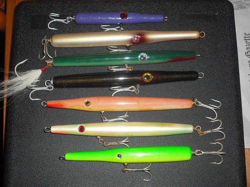 not in any particular order.. i see a fixter, a manzi, a jpi stubby... a mac?..(meybe, and meybe a lifvt? and meybe a strike king as well)... and i think one of my attempts is in there too...