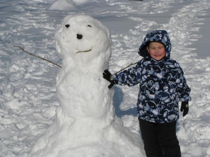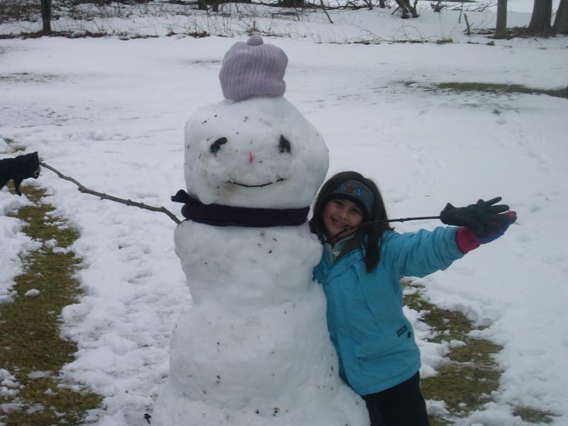 This is the snowman my son and I built last week, and he did most of the work. I had to assemble it because it was too heavy for him to lift, but he did most of the rolling and decorated it. It looks dirty because my leaf blower broke and I never got to raking that part of my back yard. All the leaves and twigs got picked up when he was rolling the snowballs.