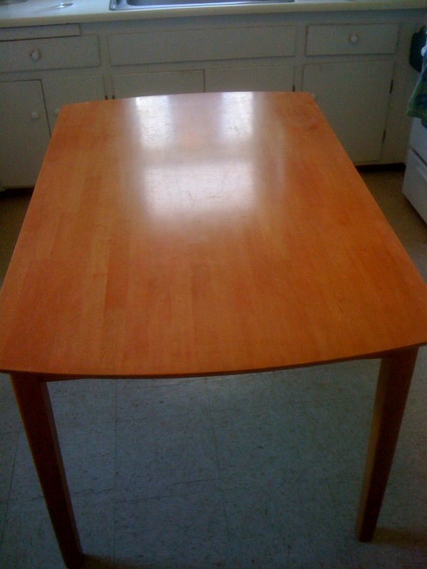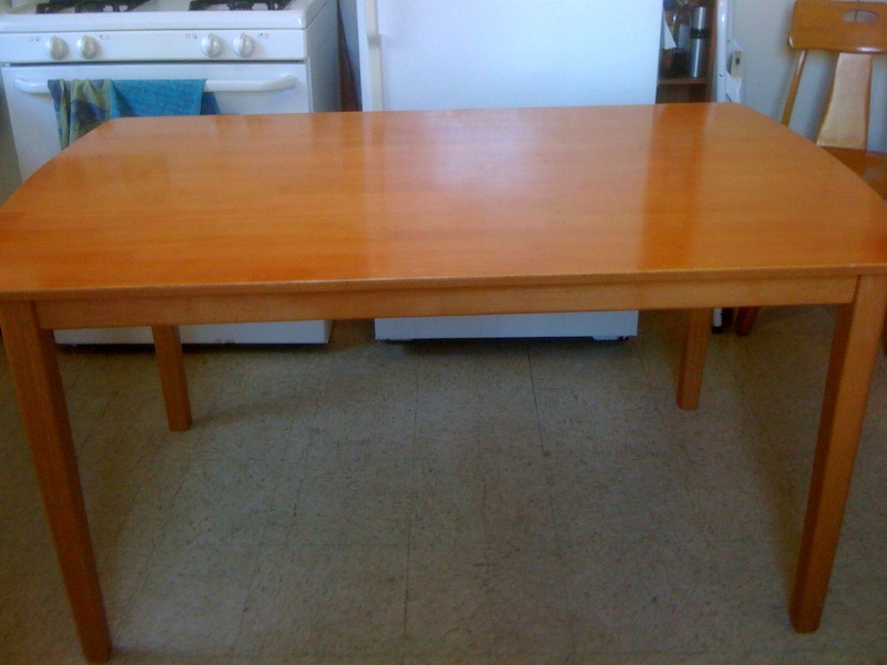 We're getting rid of a dining room table. It's solid wood and in pretty good shape. Legs come off easily for transportation. Asking $100. Dimensions: 59" wide ; 35.5" deep ; 29.5" tall. Located in Boston (Roslindale)