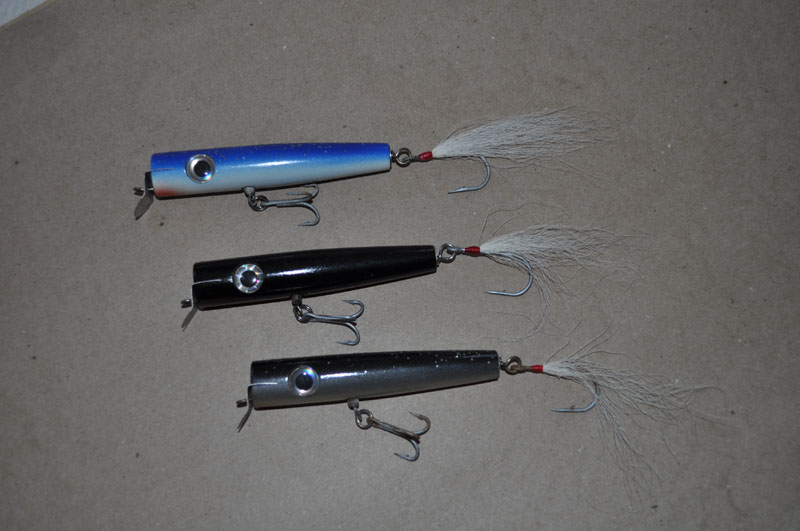 Lot of 6 plugs. A few RI Poppers, some surfsters (Troublemaker?) and a few plastics. $15