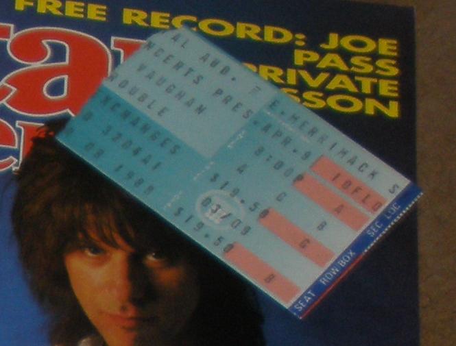 I can't believe how fast 20 years can go by......but Stevie Ray Vaughn left us just this week 20 years ago when his helicopter crashed on a mountain side following a show in Troy Wisconsin in which he appeared with his brother Jimmie, Eric Clapton, Robert Cray, Buddy Guy and others. I remember thinking how I wished I could see that show which featured all my favorite blues players on one stage. SRV being my favorite. I awoke the morning after the last show to scattered radio reports that a helicopter carrying some of the musicians from the show had crashed on a fog shrouded mountain side.......reports were sketchy and varied about who was on that helicopter and they ranged from Eric Clapton and SRV to Eric Clapton and his entourage to SRV, Clapton and Robert Cray. In the end it was SRV and a few people from Eric Claptons management group who perished. I was devastated with the news that SRV had been killed at the young age of 35 years and now just as then I can't help wondering.....what would have been? The music we missed out on due to the untimely death of a still rising star. The ticket you see in the upper right hand corner of the picture is my ticket stub from the first time I ever saw SRV play live! I waited since 4:00am at the Sears in Braintree for the ticket agency to open so I could get 4 seats for me and my buddies to go see him.......10th row center on the floor at Lowell Memorial Auditorium.....a small, intimate venue. His performance was "Jaw Dropping" to say the least. We left that show different than when we went in. Such control, such power......and so much talent. I saw him play live 6-8 times before his death. Once he opened for Robert Plant at Great Woods (ticket stub middle in picture) that was a great show but because he was the opening act I was disappointed he did not play longer than his 45 minutes. The ticket stub in the middle of the picture was from the last time I saw him play. He was teamed up with Jeff Beck. SRV was promoting his "In Step" album and Beck his "Guitar Shop" album and this was quite possibly the best show I had seen.....they were both amazing! They finished the show with a Howling Wolf song called "Goin' Down" (a recording you can hear from SRV's boxed set). They both traded riffs and solos on this last song......SRV broke a string midway through and continued without missing a beat twirling the guitar behind his neck, behind his back....just amazing! Best song I have ever seen at a show......it was powerful! I still shiver when I hear this song.....maybe because it was the last I had seen of Stevie Ray Vaughn. Maybe because it really was that power and emotion that SRV could derive from his Sunburst 59 Strat. 20 years later and I still get excited when an album is released with "new" material as there have been a few posthumous releases since his death. He was truly something to see play live and I will never forget it.