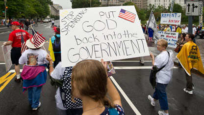 people carrying a sign "put God back in the Government"