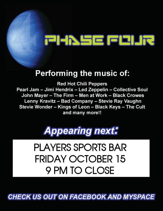 If anybody on the South Shore is looking to see a good local band come check these guys out this Friday at Players Sports Bar in Rockland. No cover and the it's a BIG bar with plenty of tv's to watch football and the baseball playoffs.