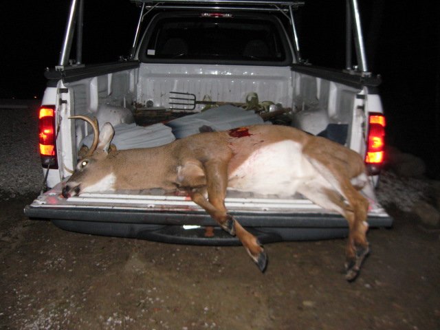 Ok who got out today and what did you see or get? I could not get out this morning but did get in the woods tonight and at 6:00 on the dot a nice 7 point came by broadside at 30 yards. The arrow flew true and 200+ pounds live weight into the back of the pickup. I know pictures to follow later. Good luck all.