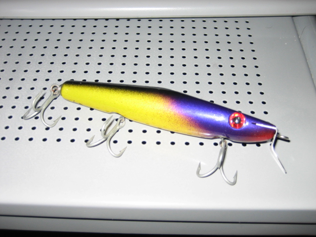 Ive had this plug 3 years, it has a hand made lip, an HAD CUSTOM PAINT on it, I picked it up the outher day an the PAINT was LIFTING all over. never been in water, or left the house. I PEELED the paint as you can see, an now is hanging. I plane on repainting it BUT  if I cut the wire pull the LIP can I get some one to RE-WIRE it  I cant Im just a HandCarvin Screew eye guy. if you can do IT  please post an Ill pull everything an SAND ,PRIME, an RE-PAINT OR  if you would like to give it a custom airbrush job your self, that would work also. Im up for anything.