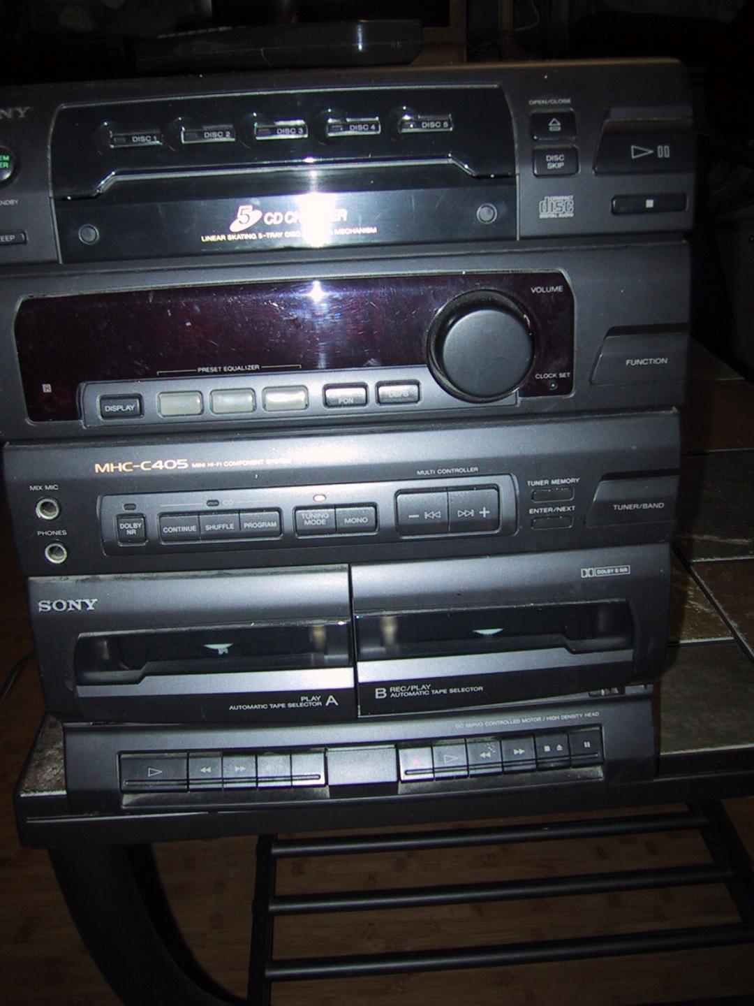 A Sony HCD-H405, takes 5 CD's, cassette tapes, and radio receiver.